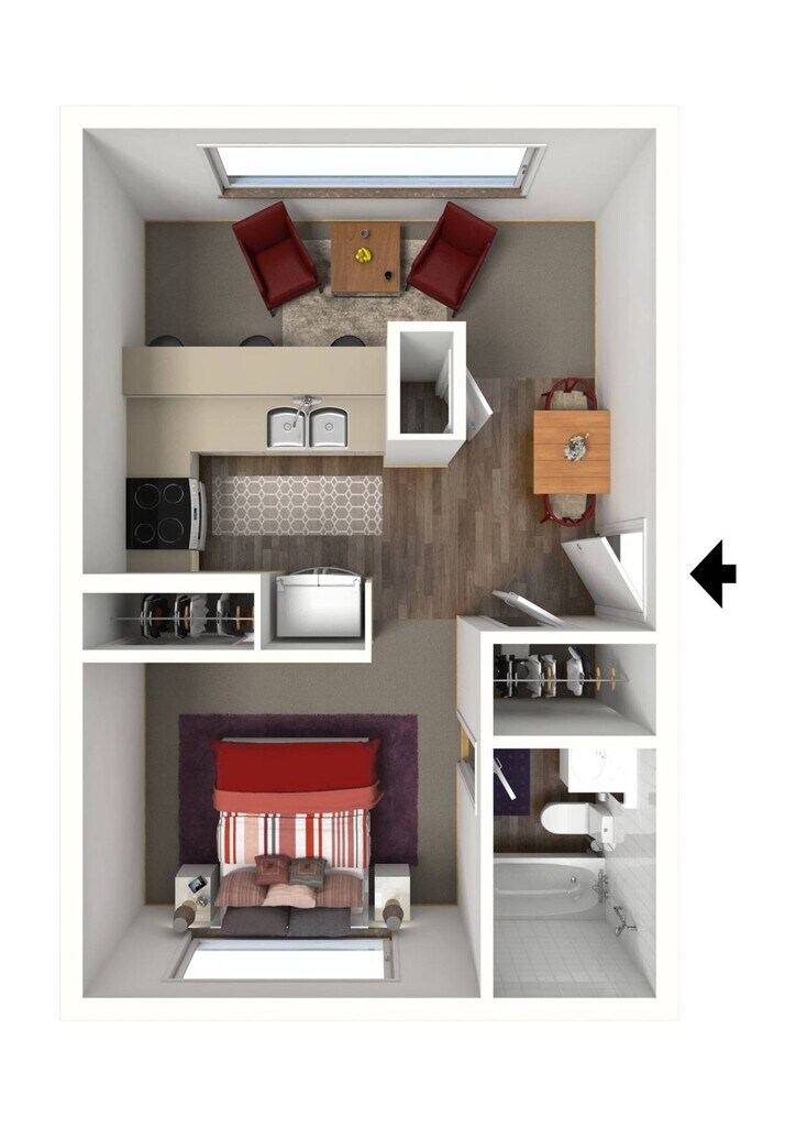 Modelo de apartamento: 1x1$9991 Dormitorio, 1 Baño, 540 sq ftNo Disponible![]()