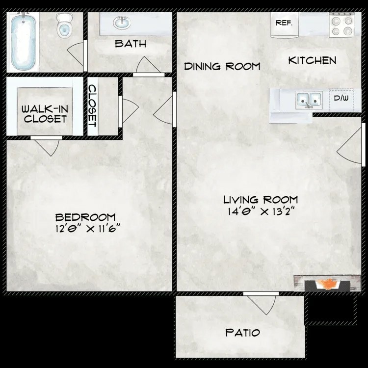 Modelo de apartamento: 1X1Desde $8201 Dormitorio, 1 Baño, 600-650 sq ftDisponible AhoraPlanosFotos![]()