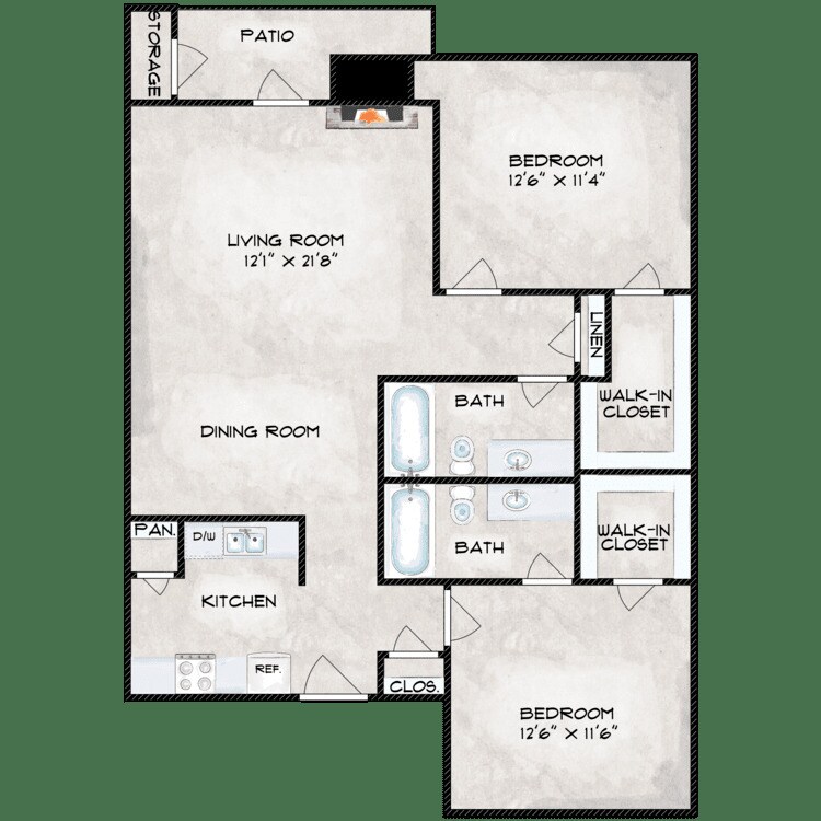 Modelo de apartamento: 2X2$1,0302 Dormitorios, 2 Baños, 980 sq ftDisponible Ahora![]()