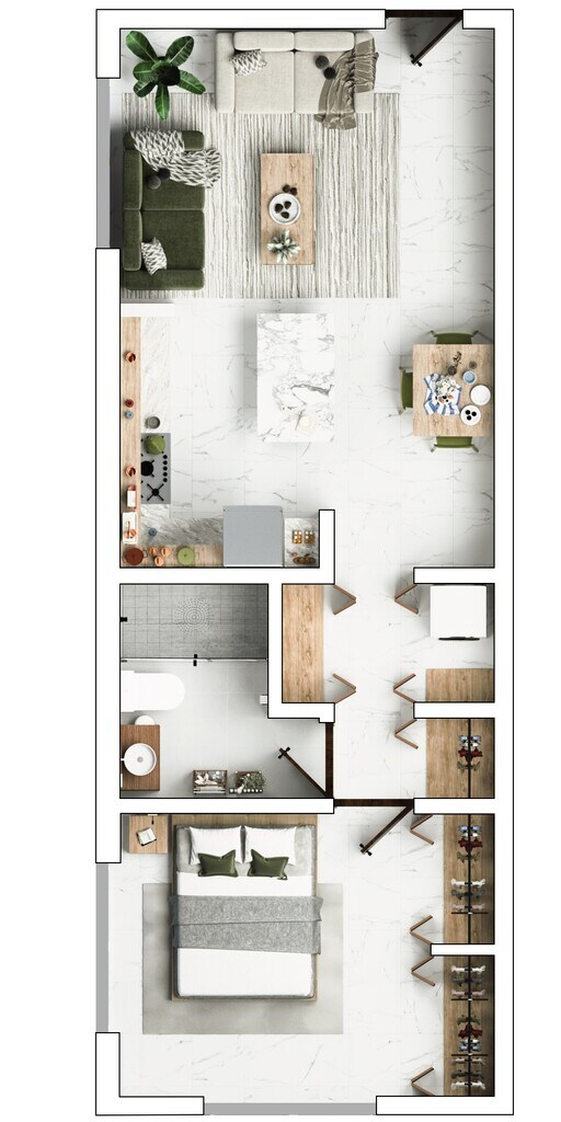 1 Dormitorio, 1 Baño, 650 pies²Galería del Modelo