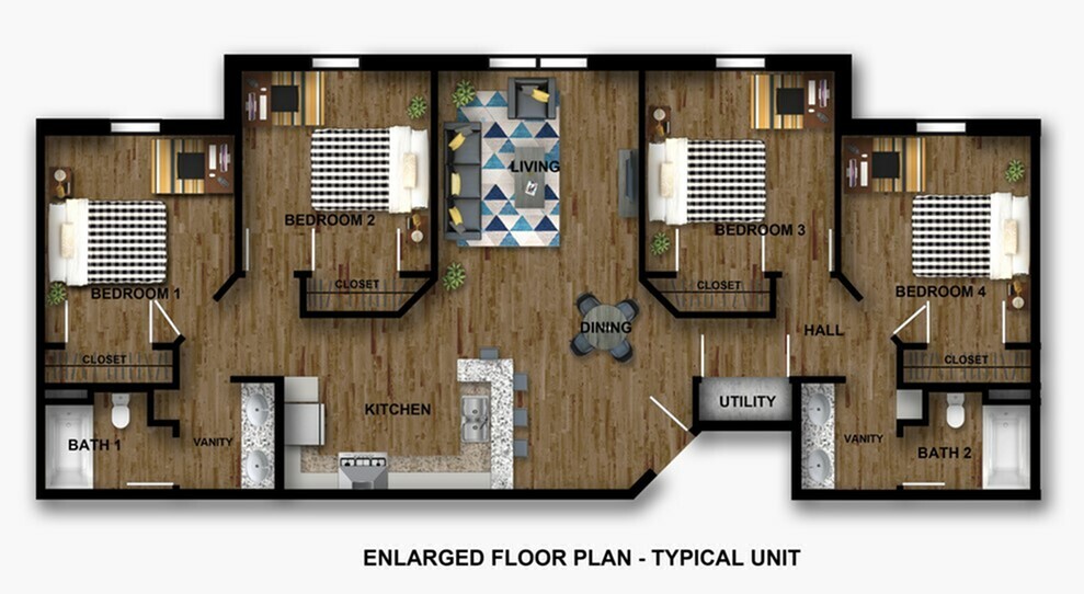Modelo de apartamento: 4x24 Dormitorios, 2 Baños, 1200 sq ftDisponible Ahora![]()