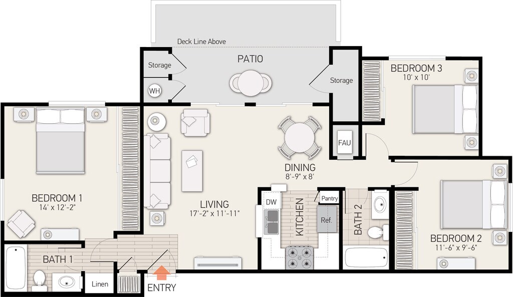 3 Dormitorios, 2 Baños, 1063 pies²Disponible Nov 1Galería del Modelo
