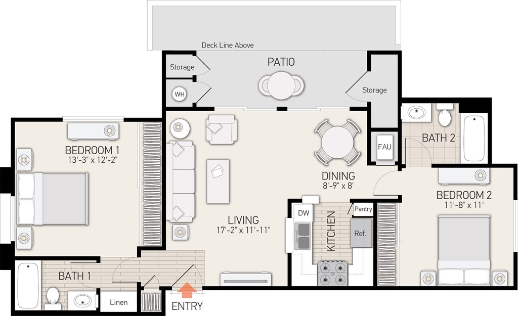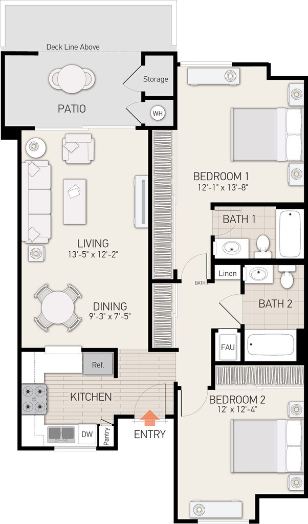 2 Dormitorios, 2 Baños, 925 pies²Disponible AhoraGalería del Modelo