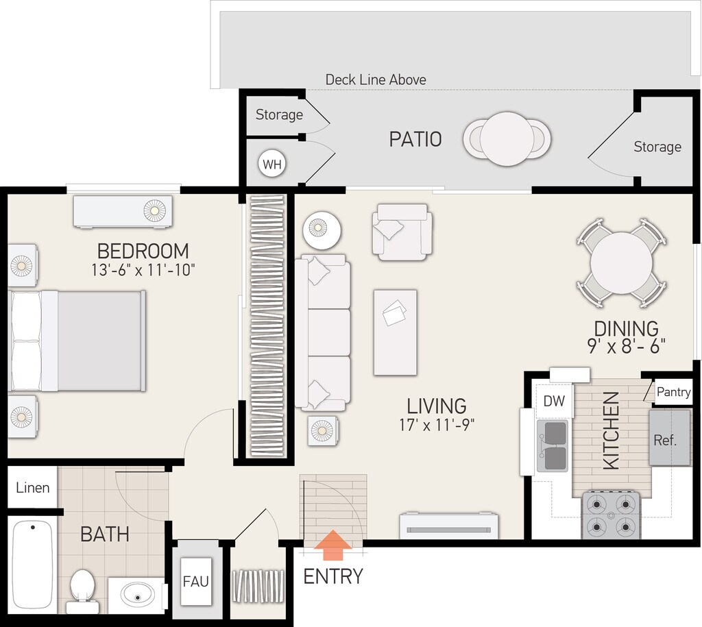 Modelo de apartamento: Plan ALlame para Precios1 Dormitorio, 1 Baño, 706 sq ftNo DisponiblePlan A - Plano 1 Plan E