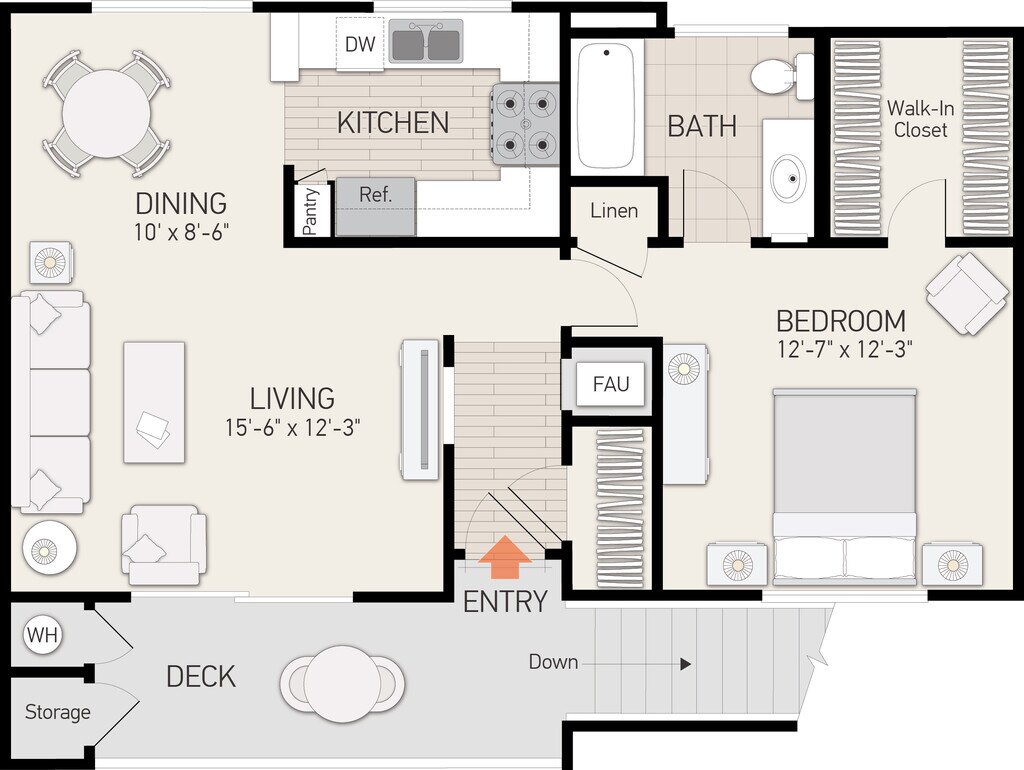 1 Dormitorio, 1 Baño, 777 pies²Galería del Modelo