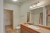 - Piso estilo madera en el baño