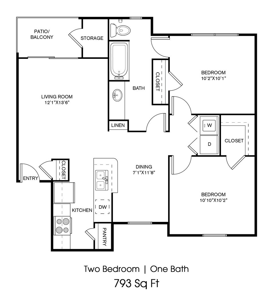Modelo de apartamento: 2x1$1,0912 Dormitorios, 1 Baño, 793 sq ftNo Disponible![]()