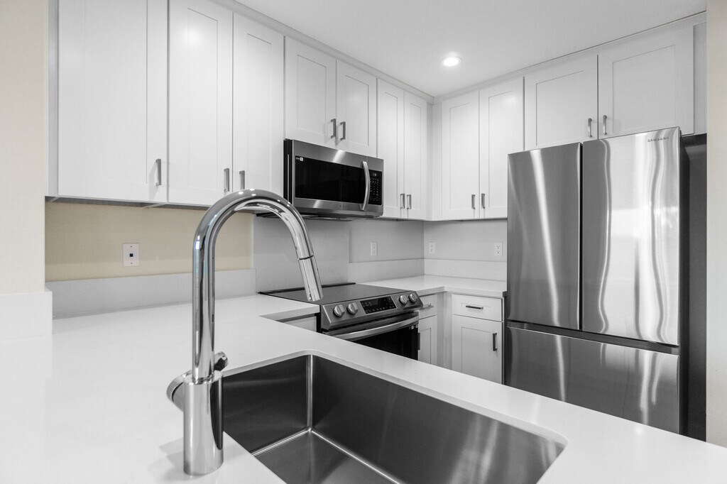 - Lavabo de cocina de un solo recipiente y grifo de pulverización extraíble