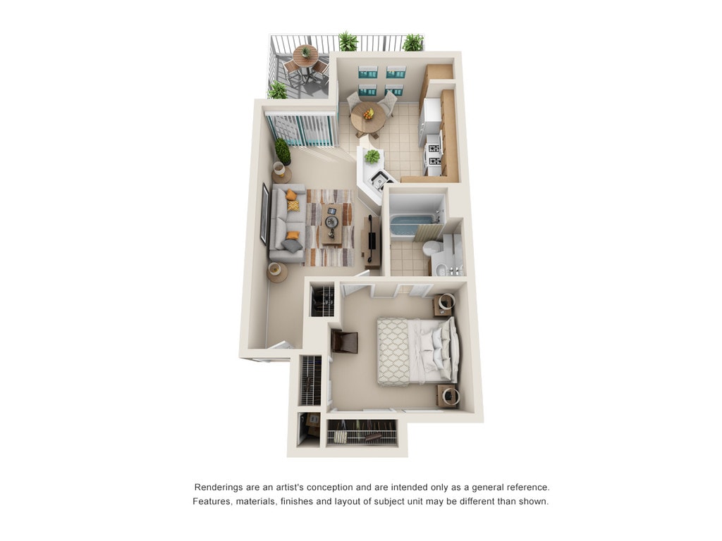 1 Dormitorio, 1 Baño, 575 pies²Disponible AhoraGalería del Modelo