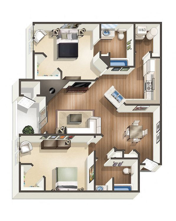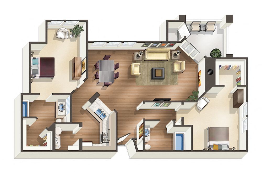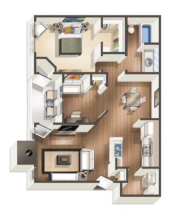 1 Dormitorio, 1 Baño, 745 pies²Disponible AhoraGalería del Modelo