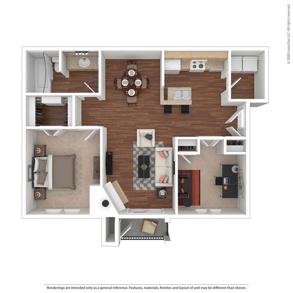 Modelo de apartamento: 1 Bed 1 Bath 724 SqFt (658 Net)Desde $1,2351 Dormitorio, 1 Baño, 658 sq ftDisponible Ahora![]()