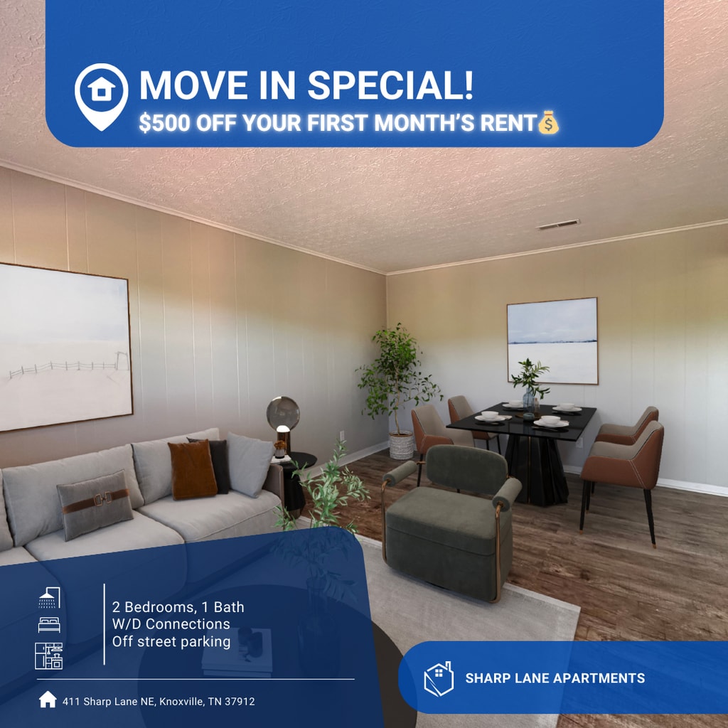 2BR-Parkway - Floorplan Apartment Unit: Parkway-1Apartment Model: 2BR-Parkway2 Bedroom, 1 Bath, 850 sq ftAvailable April 3, 2026Apartment Unit: Parkway-12Apartment Model: 2BR-Parkway2 Bedroom, 1 Bath, 850 sq ftAvailable June 5, 20262BR-Sharp Lane- w/ Washer and Dryer Connections