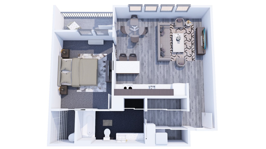 Modelo de apartamento: One Bed One Bath ADesde $1,7951 Dormitorio, 1 Baño, 621 sq ftDisponible Ahora![]()