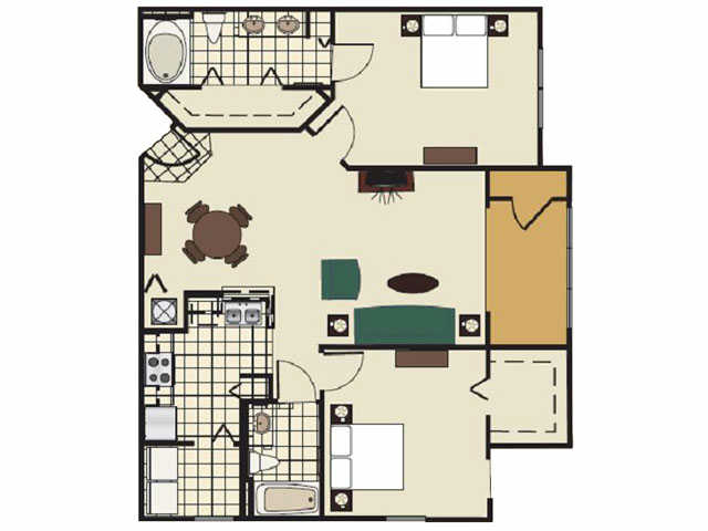 Modelo de apartamento: CapriDesde $1,2801 Dormitorio, 1 Baño, 740 sq ftDisponible Ahora![]()