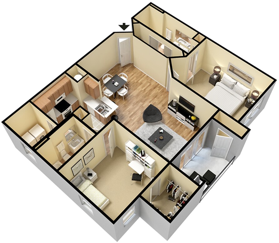 2 Dormitorios, 2 Baños, 1077 pies²Disponible AhoraEl más baratoEsta opción tiene los precios más bajos para este modeloGalería del Modelo