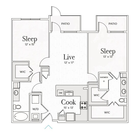 Modelo de apartamento: Matteo II2 Dormitorios, 2 Baños, 1189 sq ftDisponible Ahora![]()