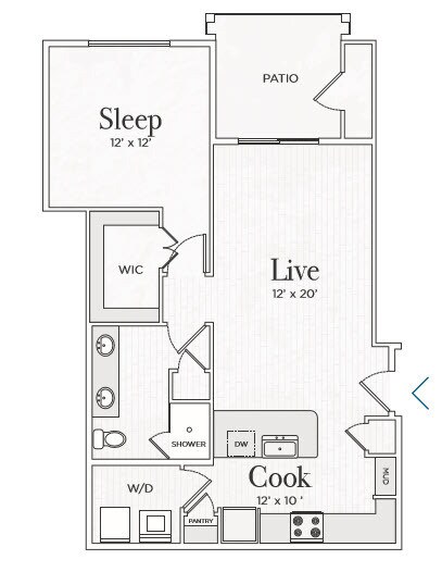 Lorenzo II - Plano 1 Unidad de apartamento: 341Modelo de apartamento: Lorenzo II1 Dormitorio, 1 Baño, 803 sq ftDisponible AhoraNicola I