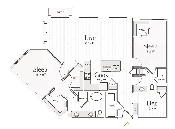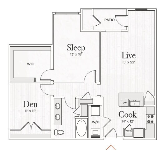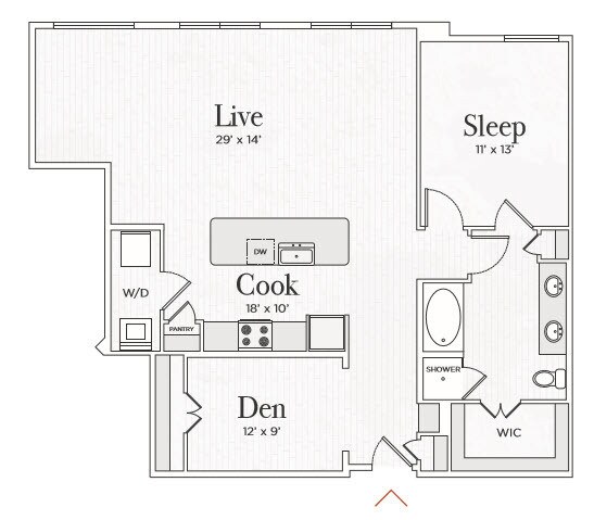 Modelo de apartamento: Lorenzo II1 Dormitorio, 1 Baño, 803 sq ftDisponible Ahora![]()