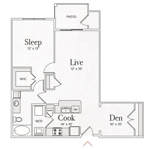 Modelo de apartamento: Lorenzo I1 Dormitorio, 1 Baño, 755 sq ftDisponible Ahora![]()