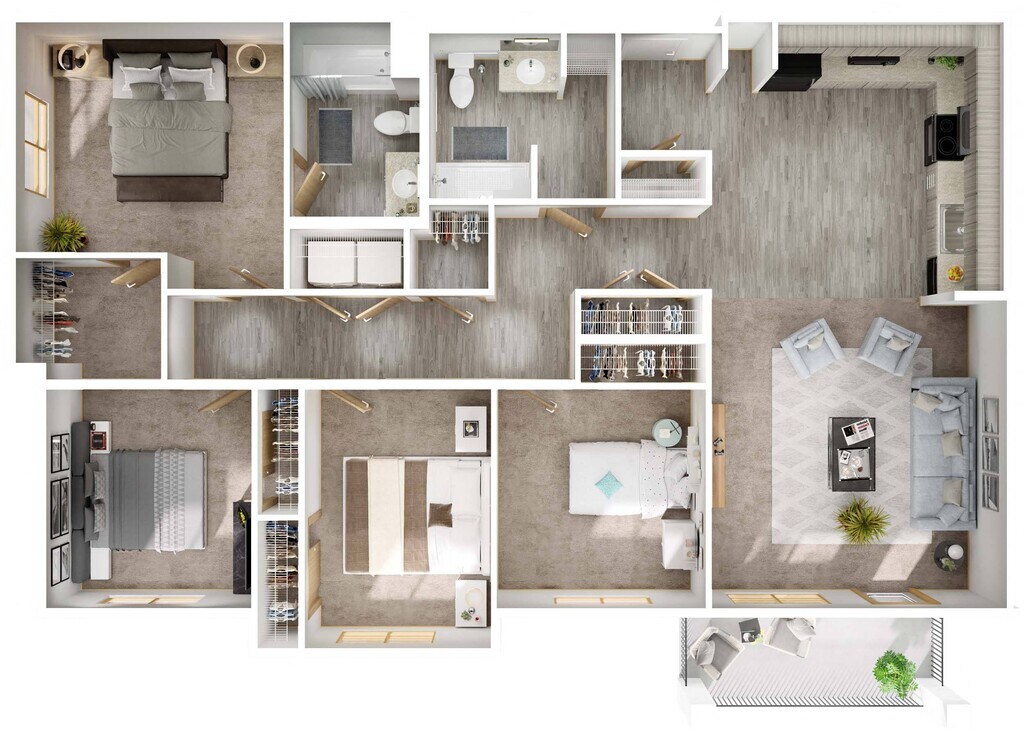 Modelo de apartamento: BirchDesde $2,4824 Dormitorios, 2 Baños, 1508 sq ftDisponible Ahora![]()