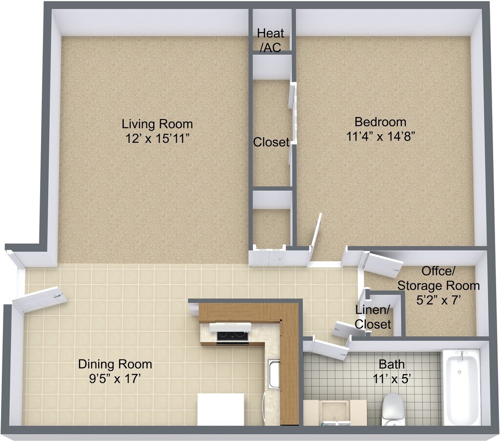 1 Dormitorio, 1 Baño, 900 pies²Disponible AhoraGalería del Modelo