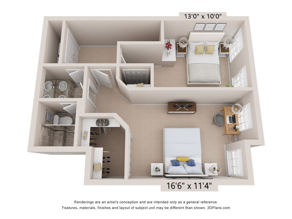 Modelo de apartamento: B1Llame para Precios2 Dormitorios, 2.5 Baños, 1200 sq ftNo Disponible![]()
