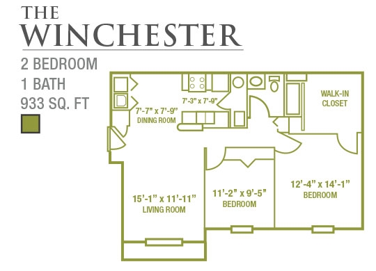 2 Dormitorios, 1 Baño, 933 pies²Disponible AhoraGalería del Modelo