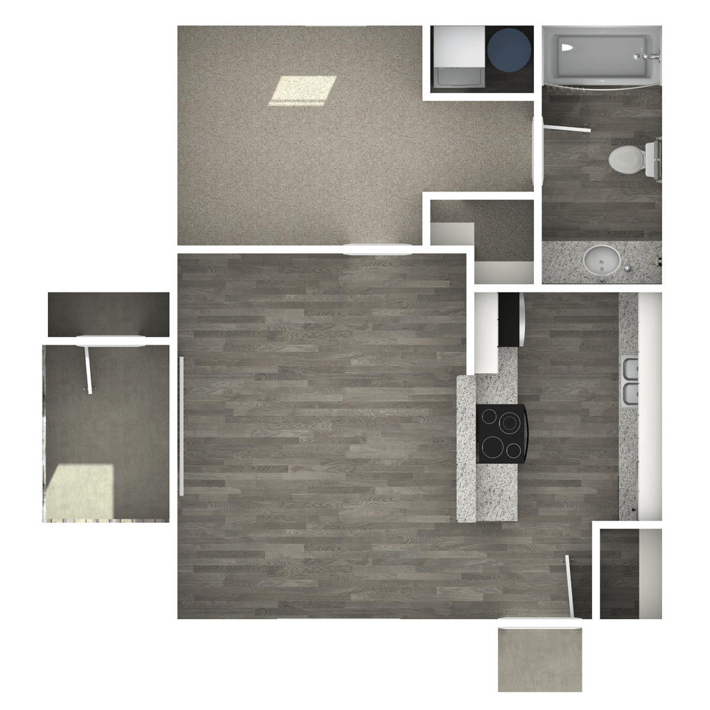 1 Dormitorio, 1 Baño, 600 pies²Disponible AhoraGalería del Modelo