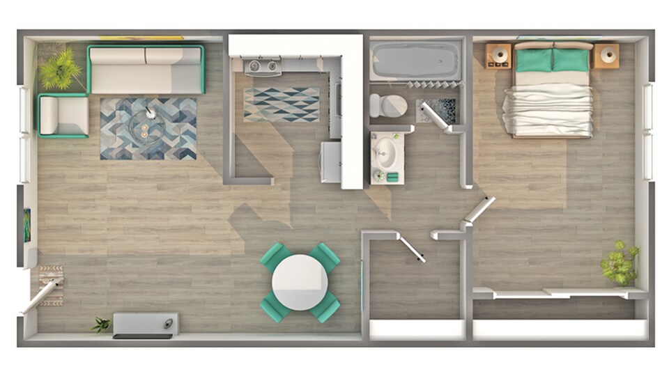 1 Dormitorio, 1 Baño, 500 pies²Disponible AhoraGalería del Modelo