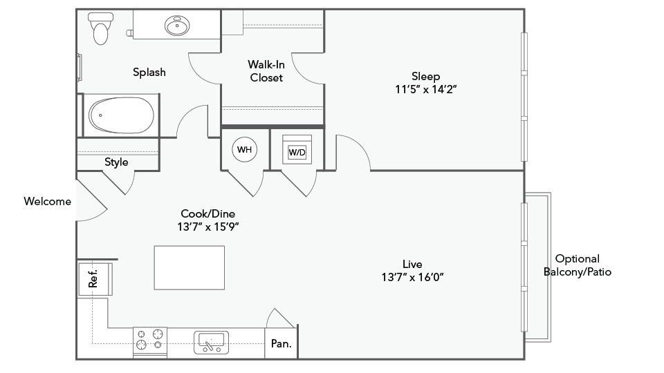 Fairfield - Plano 1 Unidad de apartamento: 1-155Modelo de apartamento: FairfieldDesde $1,729Estudio, 1 Baño, 725 sq ftDisponible AhoraFayette