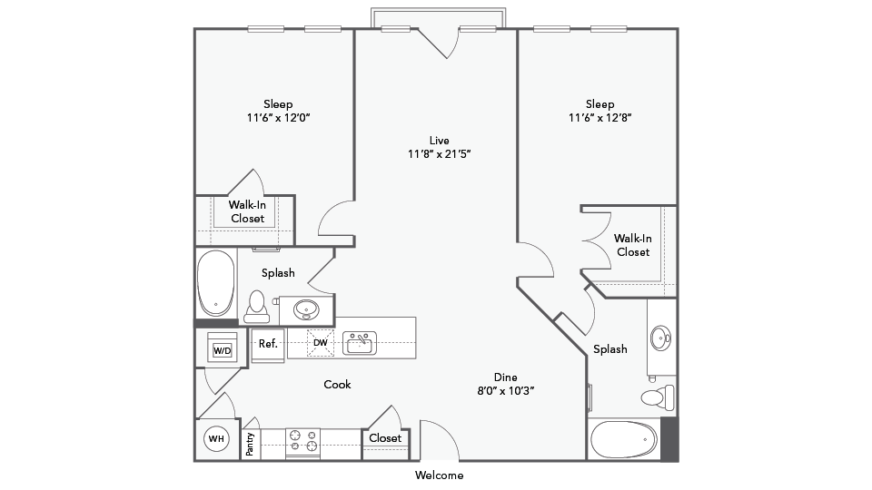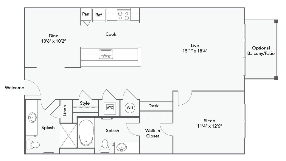 Modelo de apartamento: ArlingtonDesde $1,7791 Dormitorio, 1 Baño, 525 sq ftDisponible Ahora![]()