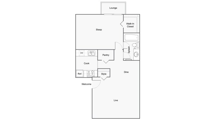 Modelo de apartamento: BentleyLlame para Precios1 Dormitorio, 1 Baño, 750 sq ftNo DisponibleBentley - Plano 1 Brice