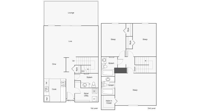 Modelo de apartamento: RhettLlame para Precios3 Dormitorios, 2.5 Baños, 1366 sq ftNo DisponibleRhett - Plano 1