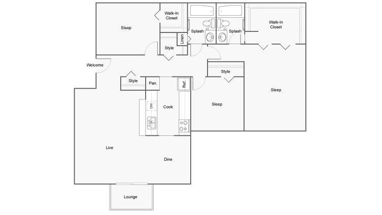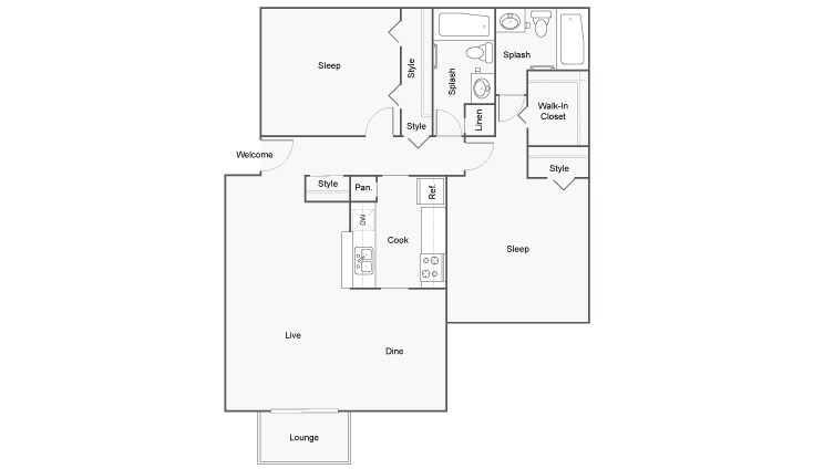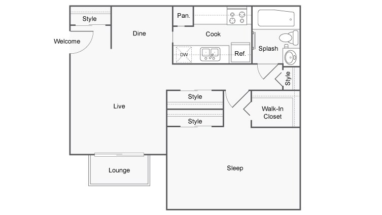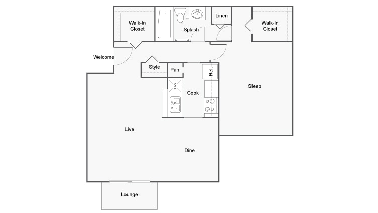 Modelo de apartamento: CashLlame para Precios1 Dormitorio, 1 Baño, 618 sq ftNo DisponibleCash - Plano 1 2 Dormitorios