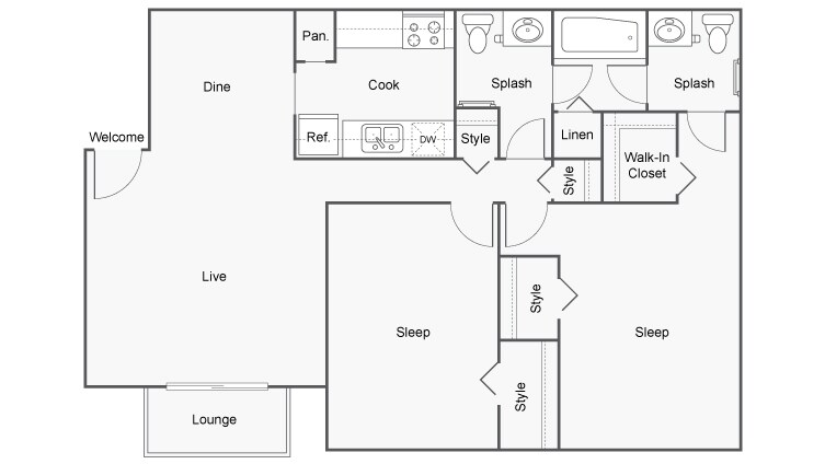 2 Dormitorios, 2 Baños, 911 pies²Disponible AhoraGalería del Modelo