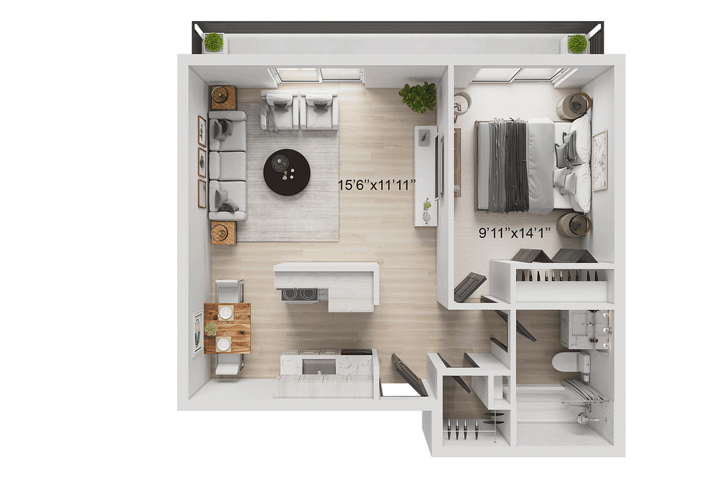 Modelo de apartamento: A1Desde $1,2391 Dormitorio, 1 Baño, 550 sq ftDisponible March 6, 2026![]()