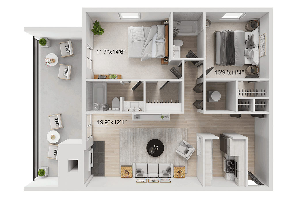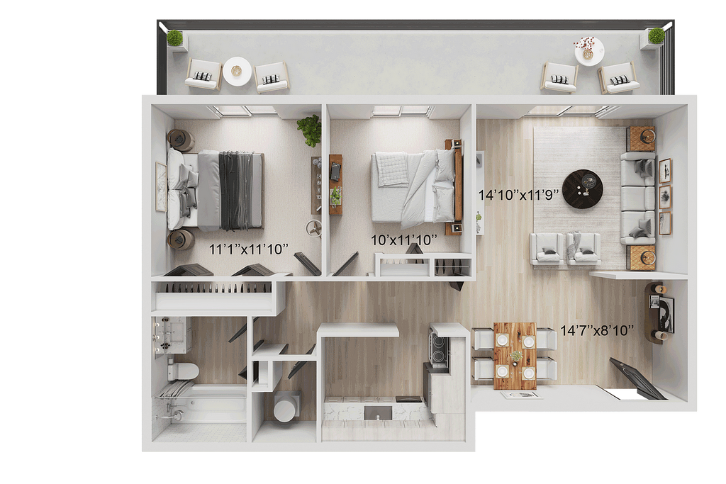 Modelo de apartamento: B2Desde $1,6892 Dormitorios, 2 Baños, 943 sq ftDisponible Ahora![]()