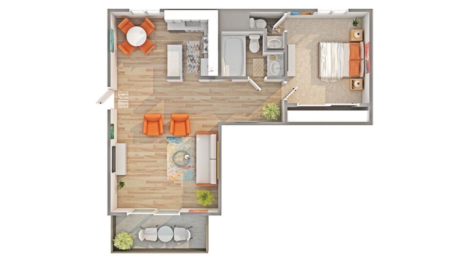 Modelo de apartamento: Aspen1 Dormitorio, 1 Baño, 653 sq ftNo Disponible![]()