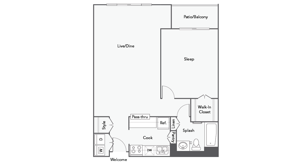1 Dormitorio, 1 Baño, 805-840 pies²Disponible AhoraGalería del Modelo