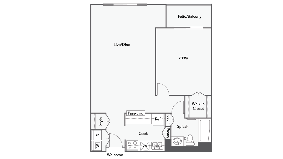 Allen - Plano 1 Unidad de apartamento: 1-504Modelo de apartamento: AllenDesde $2,9191 Dormitorio, 1 Baño, 1165 sq ftDisponible AhoraApex
