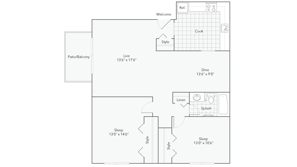 2 Dormitorios, 1 Baño, 1000 pies²Disponible AhoraGalería del Modelo