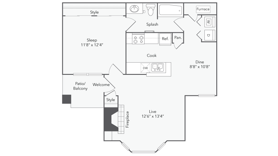 Modelo de apartamento: AikenDesde $1,9091 Dormitorio, 1 Baño, 541 sq ftDisponible Ahora![]()