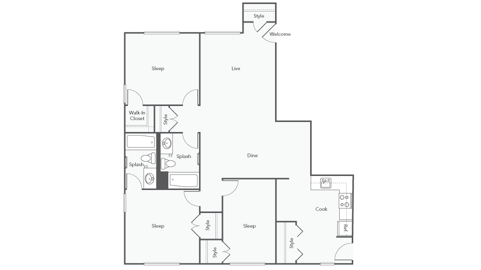 3 Dormitorios, 2 Baños, 1190 pies²Precio Mensual TotalDisponible Dec 31Galería del Modelo