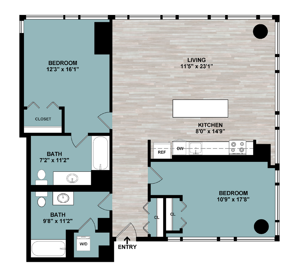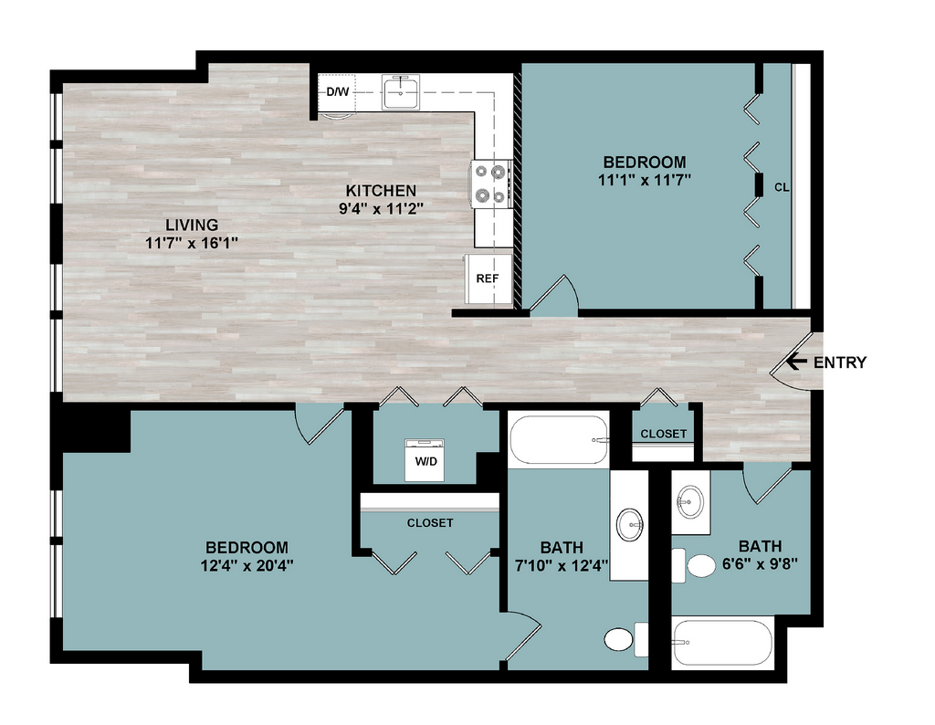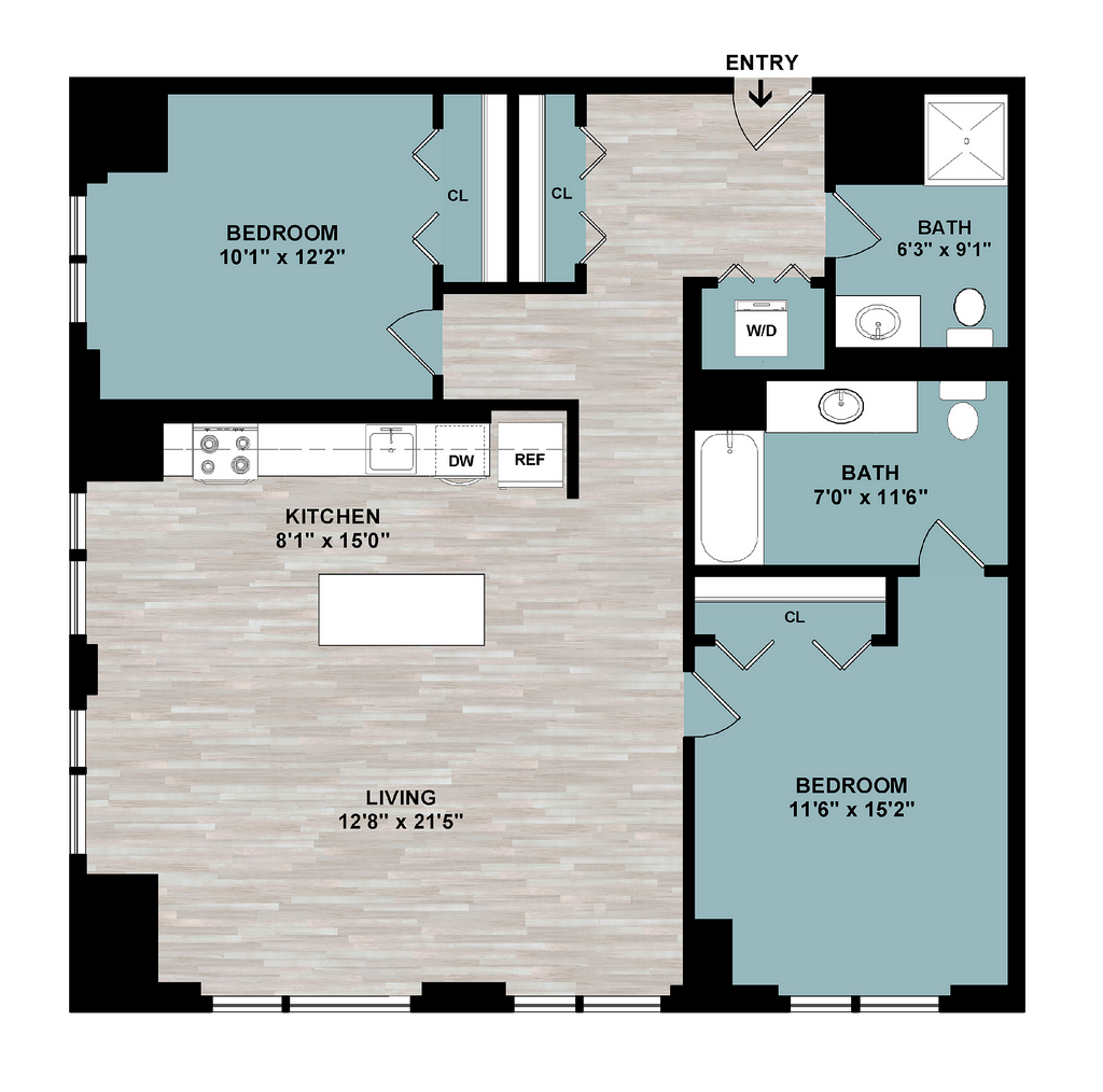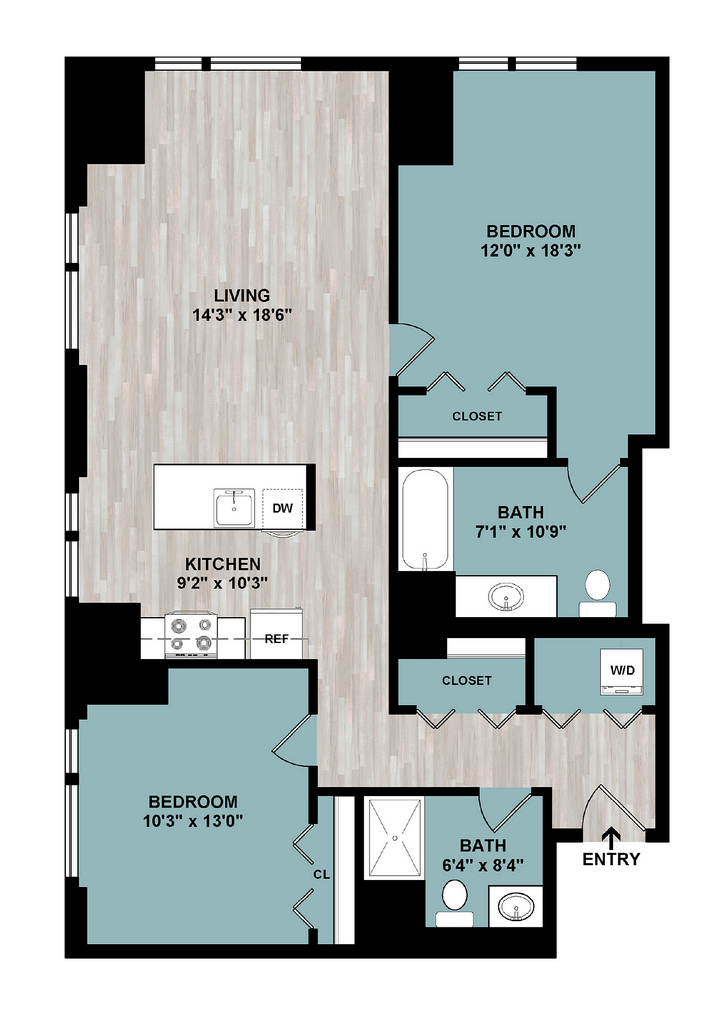 Modelo de apartamento: C3Desde $3,3492 Dormitorios, 2 Baños, 1101 sq ftDisponible AhoraPlanos3D Tours![]()