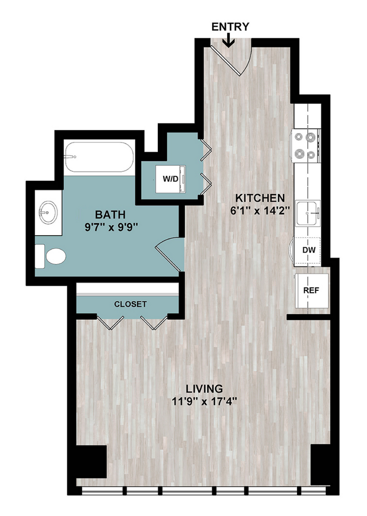 S3 - Plano Unidad de apartamento: 1-302Modelo de apartamento: S3Desde $2,039Estudio, 1 Baño, 549 sq ftDisponible Ahora1 Dormitorio