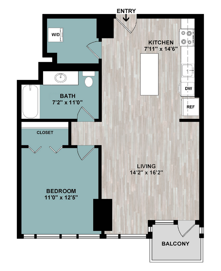 Modelo de apartamento: A1Desde $2,3891 Dormitorio, 1 Baño, 712 sq ftDisponible AhoraPlanos3D Tours![]()