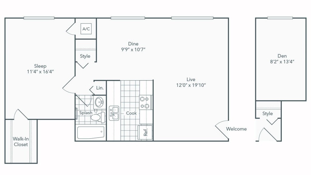 Modelo de apartamento: Arlington DenDesde $1,5751 Dormitorio, 1 Baño, 950 sq ftNo DisponibleArlington Den - Plano 1 2 Dormitorios