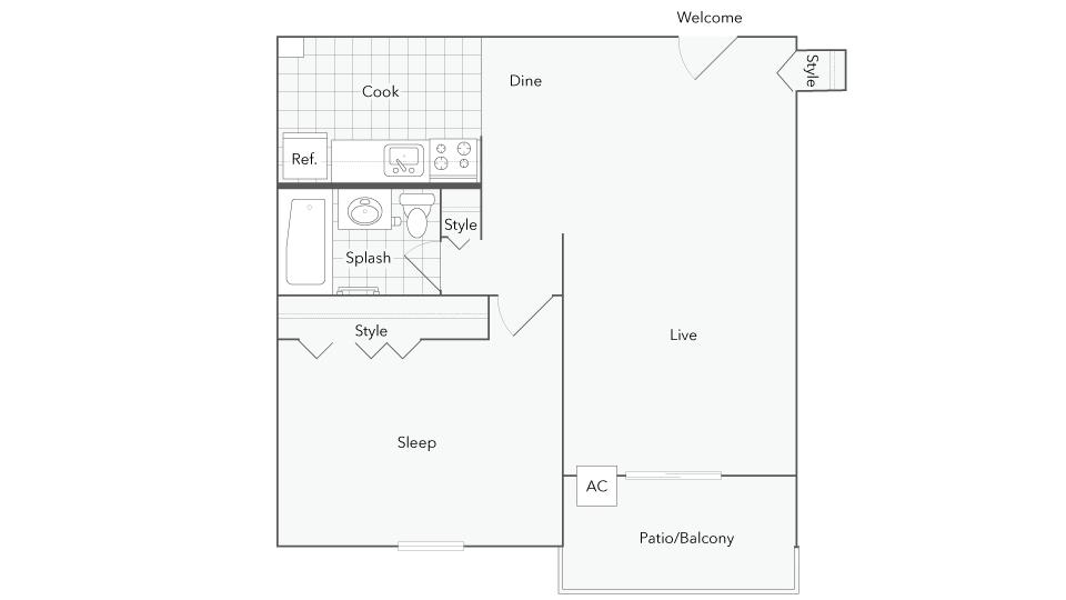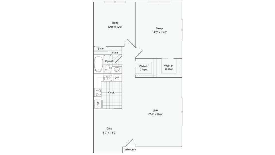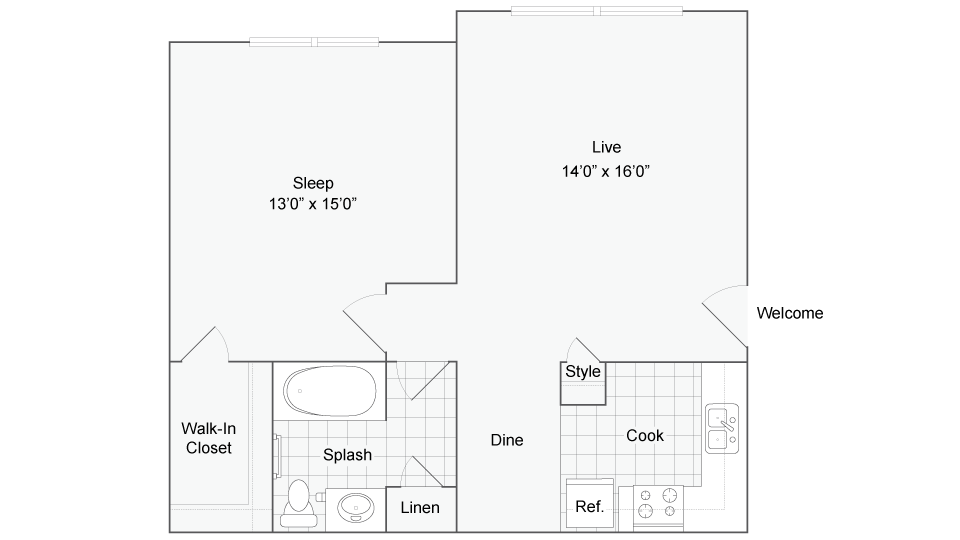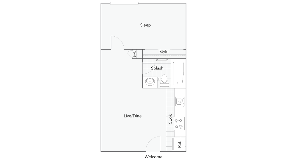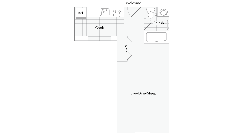 Modelo de apartamento: Dean - FalmouthEstudio, 1 Baño, 450 sq ftNo Disponible![]() - Dean - Falmouth - Plano 1