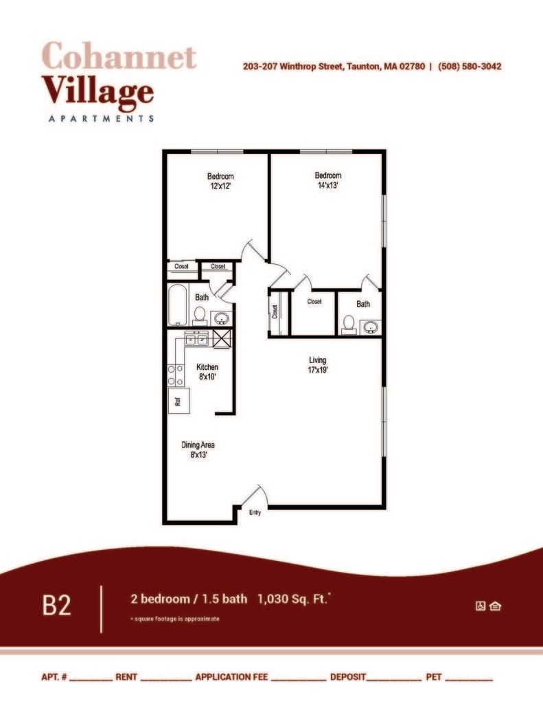 - 1 DormitorioVer Planos No Disponibles- Winthrop - Bristol- Desde $2,0001 Dormitorio, 1 Baño, 800 pies²Más CargosDisponible Ahora- Galería del Modelo- Planos- Detalles de Diponibilidad- Precio - Fecha Disponibilidad - Unidad - Pies² - Depósito - Ver Detalles - $2,000 - Disponible Ahora - 203-B11 - 800 - $500 - $2,000 - Disponible Ahora - 205-A3 - 800 - $500 - Características y Comodidades de Modelo- Características- Accesible en sillas de ruedas (habitaciones)