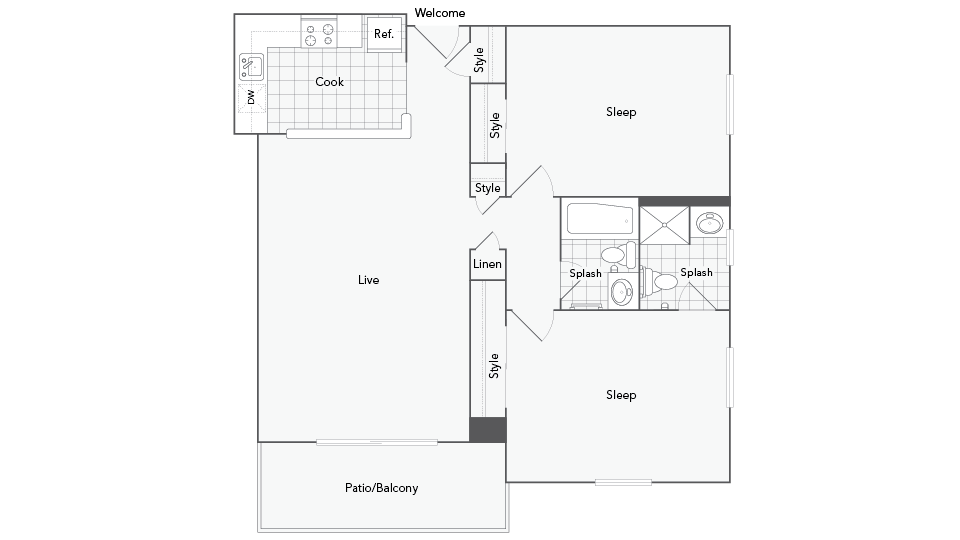 Modelo de apartamento: AllentownDesde $2,5901 Dormitorio, 1 Baño, 680-689 sq ftDisponible Ahora![]()